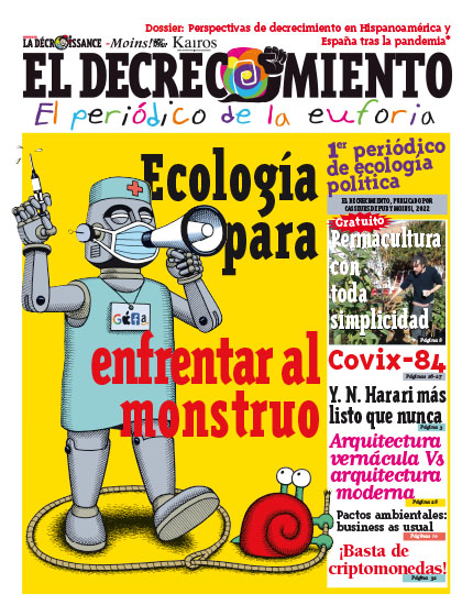 Hace ya mucho tiempo que nuestra primera versión en español de El Decrecimiento se ha agotado. Así que aquí tenemos un nuevo número, publicado con la colaboración de las revistas suizas y belgas de objetores de crecimiento, Moins! y Kairos. Una colaboración internacional para un número de 32 páginas a todo color sobre el decrecimiento y la dictadura tecnosanitaria. Es gratis, pero no dudes en ayudarnos a financiar la exportación de nuestras ideas a España y Latinoamérica enviándonos los gastos del envío (en sellos, cheques a nombre de Casseurs de Pub o transferencias) Cela fait un moment que notre version espagnole, El Decrecimiento, est épuisée. Voici donc un nouveau numéro, éditée en collaboration avec les revues des objecteurs de croissance suisses et belges, Moins! et Kairos. Une collaboration internationale pour un numéro de 32 pages tout en couleur sur la décroissance et la dictature techno-sanitaire. Il est gratuit mais n'hésitez pas à nous aider à financer l'exportation vers l'Espagne et l'Amérique latine de nos idées en rajoutant un timbre ou plus !